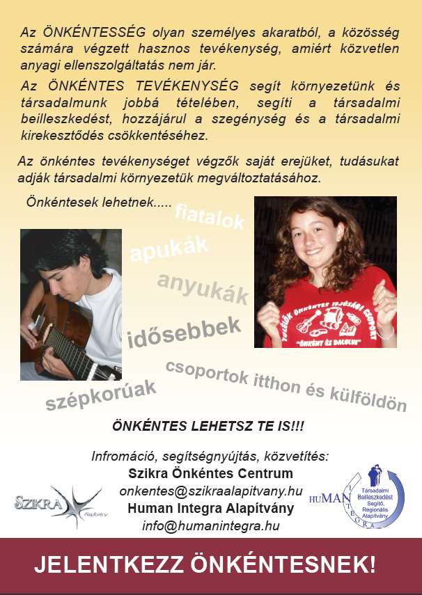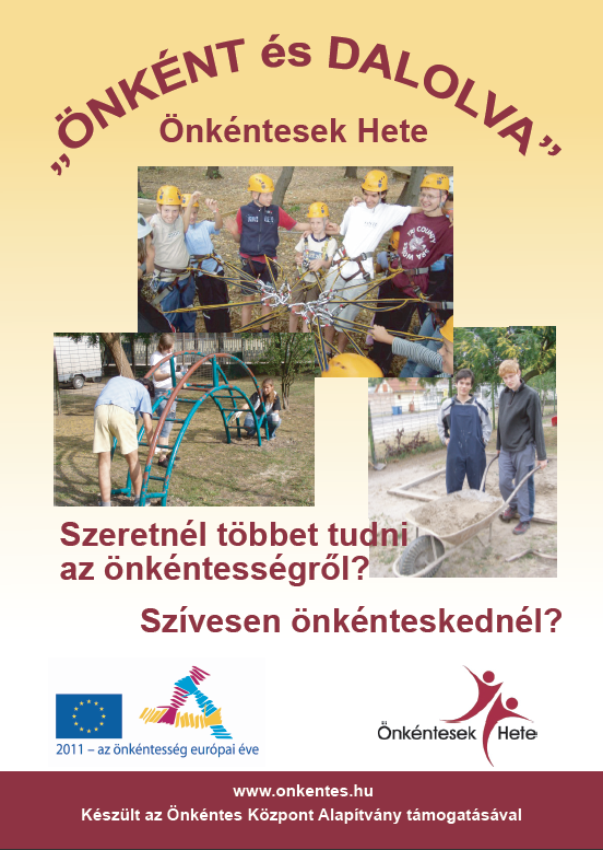 Pályázati azonosító: ÖH2011-378 Szeretettel meghívjuk rendezvényeinkre, amelyek időpontjait a MEGHÍVÓBAN megtekinthetik. Ha többet akarsz tudni az ÖNKÉNTESSÉGRŐL tekintsd meg a következő anyagokat: