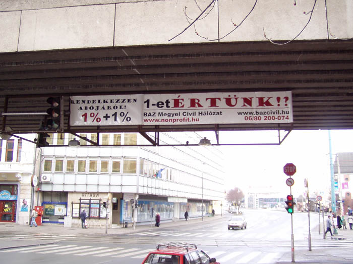 A program része volt molinók kihelyezése forgalmas közterületeken, buszreklám, lift reklám, újsághirdetés, szórólap, plakát, a kampányt bemutató reklámtárgyak, kulcstartó, toll készÃtése, TV, rádió bemutatkozás, hÃrlevél kiküldése. A tavalyi kampányunkhoz hasonlóan egyrészt a legnagyobb magyar országos adatbázisra (www.nonprofit.hu) hÃvtuk fel a figyelmet, továbbá az idõközben megalakult a B-A-Z. megyei Civil Hálózatra (www.bazcivil.hu) is, mely már rendelkezik honlappal, amelyen elérhetõk 1%-os felajánlásokat fogadó megyei szervezetekrõl információk. Támogatónk: Civil Szolgáltató, Fejlesztõ és Információs Kollégiuma ![]() ![]() ![]() ![]() ![]() ![]() ![]() ![]() |